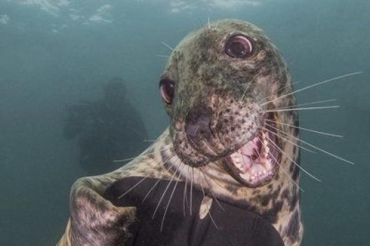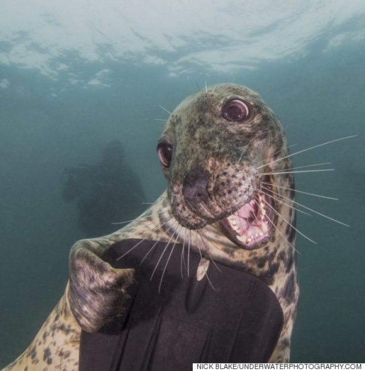 La ganadora (y la más disparatada) se titula Hello Cheeky (que se podría traducir como Hola, chato) y muestra a una foca posando ante la cámara mientras sujeta la aleta de un buzo.