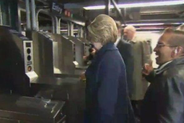 Hillary Clinton, objeto de bromas por sus problemas para entrar en el Metro