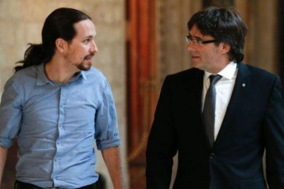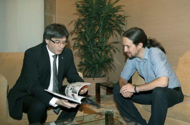El líder de Podemos ha realizado estas declaraciones en rueda de prensa tras una reunión de una hora y media de duración con el presidente catalán, Carles Puigdemont, en el Palau de la Generalitat de Barcelona.