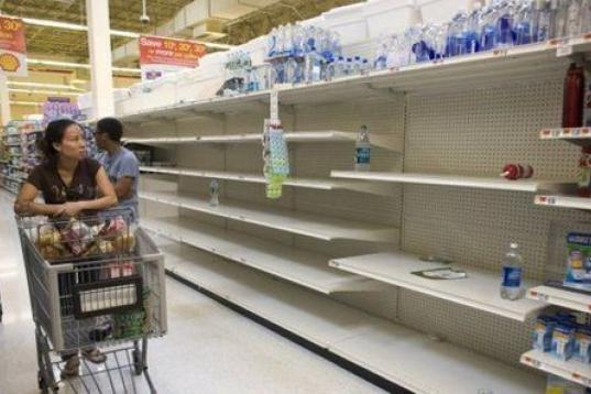 En la base de datos de la agencia, la foto aparece fechada y con un pie que no deja lugar a dudas: "Una compradora pasea entre estanterías vacías mientras busca agua embotellada en un Stop and Shop (un supermercado) en Rockaway Beach, Nueva York".