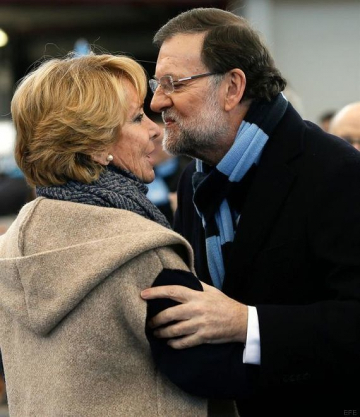 Mariano Rajoy besa a Esperanza Aguirre en un acto electoral, en diciembre de 2015.