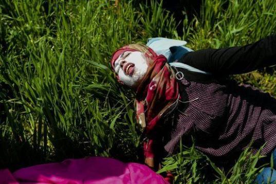 Una joven refugiada, con problemas para respirar tras el ataque de los agentes macedonios.