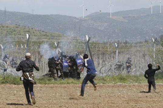 Mientras que la policía macedonia aclaraba a un pequeño grupo de personas que eso no iba a ocurrir, varios centenares más se acercaron hasta la valla y algunos de ellos empezaron a lanzar piedras contra las fuerzas fronterizas, que contestaron lanzando gases lacrimógenos, granadas de aturdimiento y balas de goma.