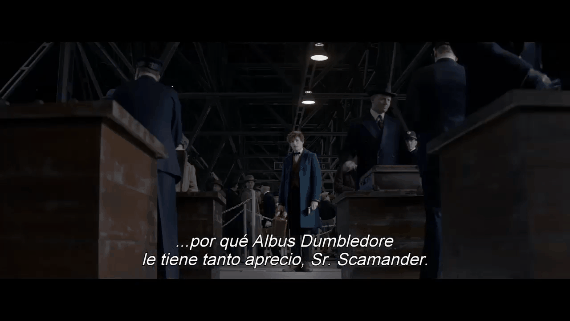 El que es (con permiso de Harry Potter y de El Que No Debe Ser Nombrado) el mago más importante de todos los tiempos también aparece en la cinta. De hecho, el director de Hogwarts aparece junto después de la escena anterior, unido a la expulsión de Scamander de la misma, alrededor del segundo 30. "Aún así, uno de sus profesores se opuso rotundamente a que lo expulsaran", se oye decir a la voz en off. "Me pregunto por qué Albus Dumbledore le tiene tanto afecto, señor Scamander". Eso hace tomarle más simpatía al personaje de Redmayne.