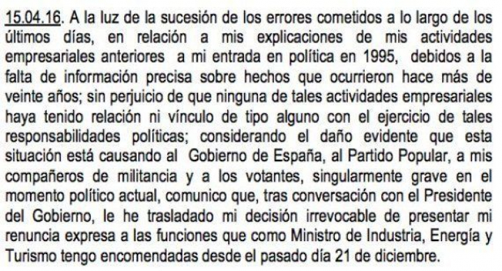 Cachondeo en Twitter con el primer párrafo del comunicado de renuncia de Soria