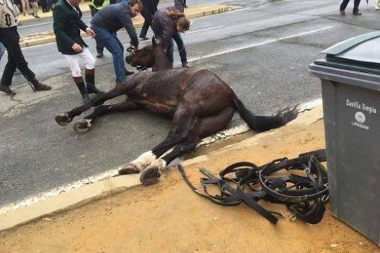 "Según los testigos presenciales, el caballo estaba enganchado a un carro, cuando comenzó a temblar. Lo soltaron del carro y siguió con los fuertes temblores hasta que le fallaron las patas y cayó al suelo. Fue atendido inmediatamente por los veterinarios que por suerte estaban cerca. Estuvieron casi dos horas con el caballo tumbado administrúndole sueros. Quizás gracias a ellos el caballo esté vivo hoy", indica en su muro PACMA Sevilla.