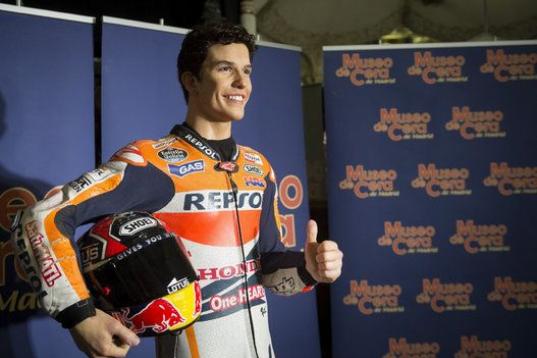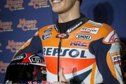 Marc Márquez ya está en el Museo de Cera de Madrid. Desde este jueves, el piloto catalán cuenta con su 'alter ego' de cera en homenaje a su trayectoria deportiva.