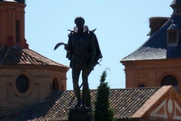 Estatua de Miguel de Cervantes en su ciudad natal, Alcalá de Henares.