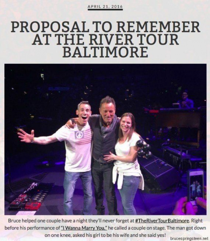 Otro momento arrebatador del Boss, después del que tuvo el pasado día 20 en su concierto de Baltimore, cuando antes de interpretar I wanna marry you subió al escenario a una pareja y el chico, rodilla en tierra, pidió matrimonio a la chica. Dijo sí, claro. Delante de Springsteen...
