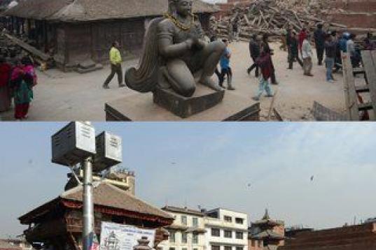 Del casi millón de viviendas dañadas o destruidas apenas 30.000 han sido reconstruidas o entregadas. Alrededor de medio centenar de familias de Bakhtapur aún siguen viviendo en el predio de una escuela convertida en un campamento con demasiados meses de vida como para seguir llamándole temporal.
