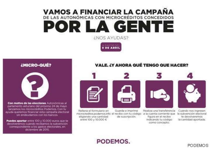 El portavoz de Podemos en el Congreso, Iñigo Errejón, ha emplazado a los demás partidos a "tomar ejemplo" de Podemos para que lleven cabo una campaña electoral "austera" y se financien con microcréditos (donaciones de los ciudadanos) y no mediante créditos concedidos por los bancos.