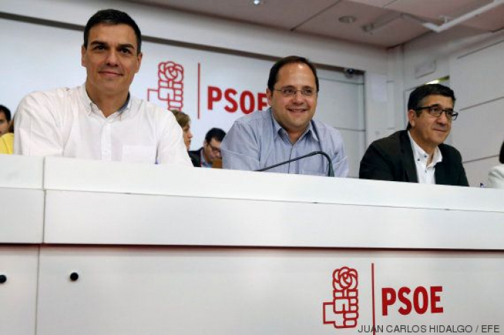 Pedro Sánchez, César Luena y Patxi López, en el comité socialista de ayer.