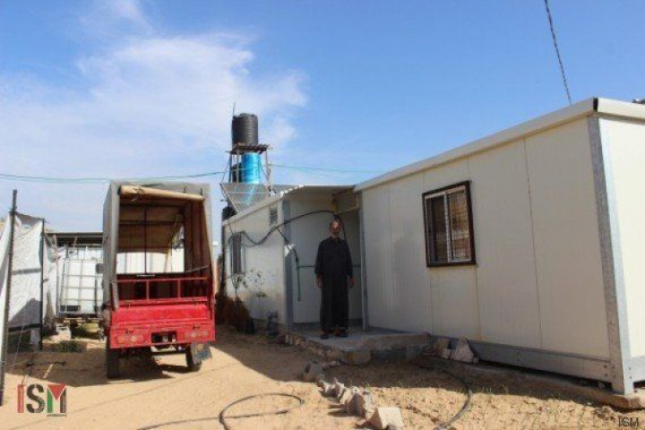 Hisham El Khorani, ante su casa prefabricada.