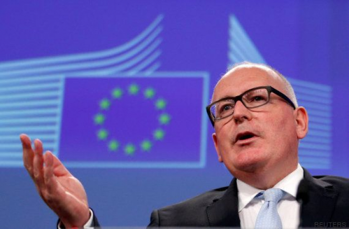 El vicepresidente primero de la CE, Frans Timmermans, durante la rueda de prensa