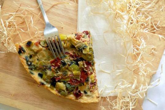 Se parece al clásico quiche, pero no lleva nata ni huevos. De ahí que el resultado sea mucho más ligero. Aquí puedes ver la receta.