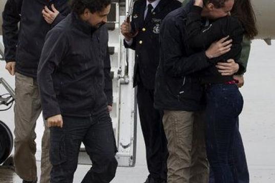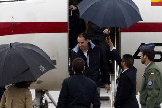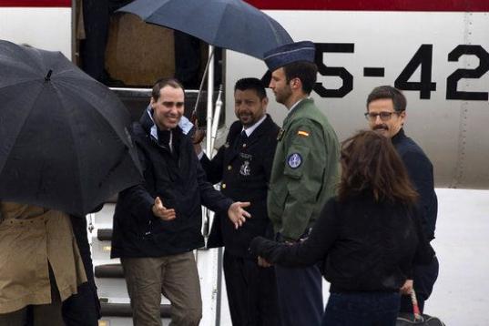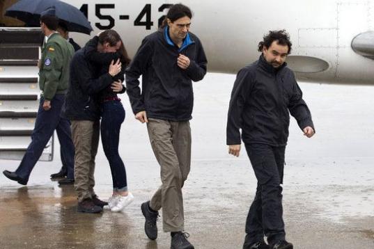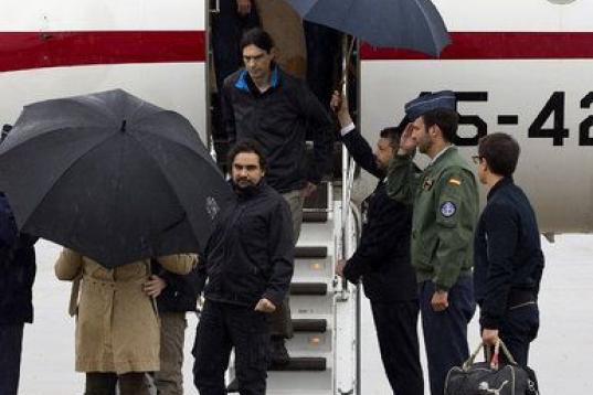 Los reporteros, que permanecían secuestrados desde julio del año pasado y que fueron liberados ayer, procedían de Turquía y llegaron a la Base Aérea de Torrejón de Ardoz, en la capital española.