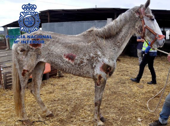 Uno de los caballos maltratados, en una imagen de la Policía Nacional.