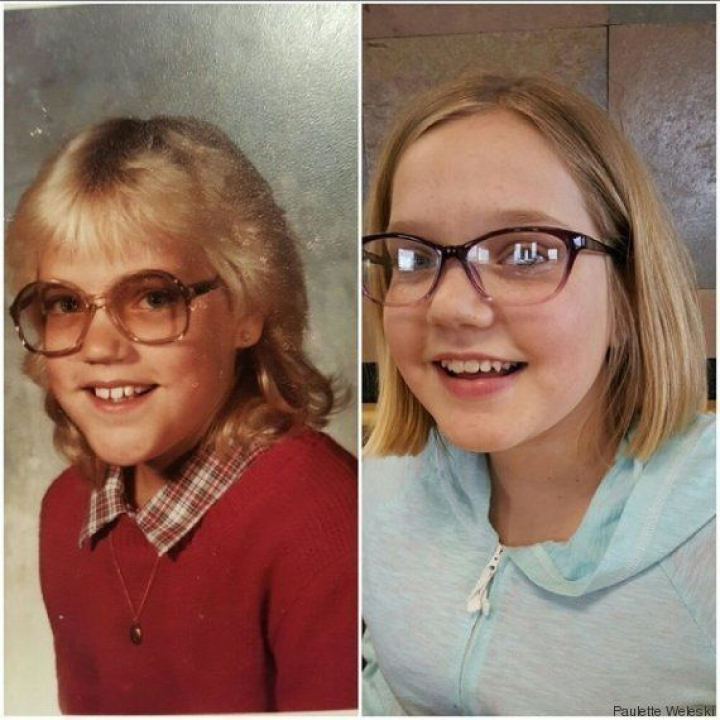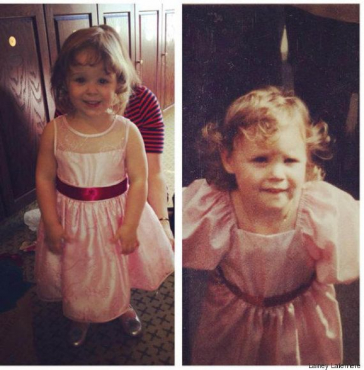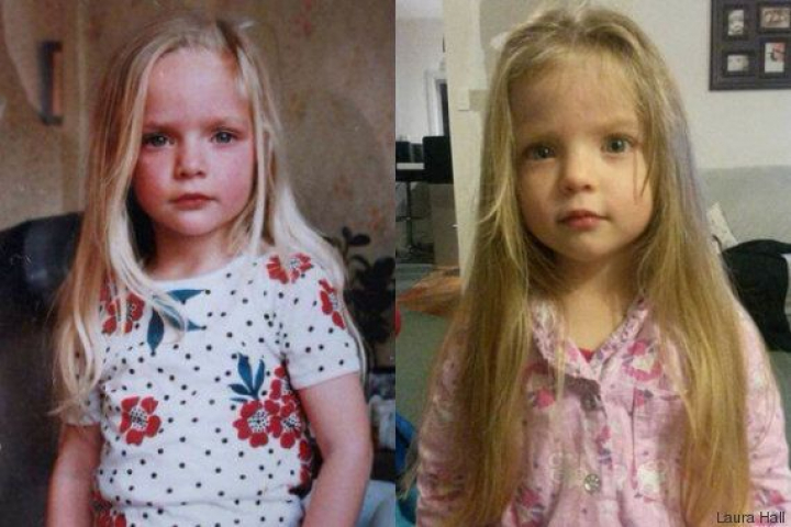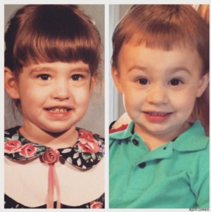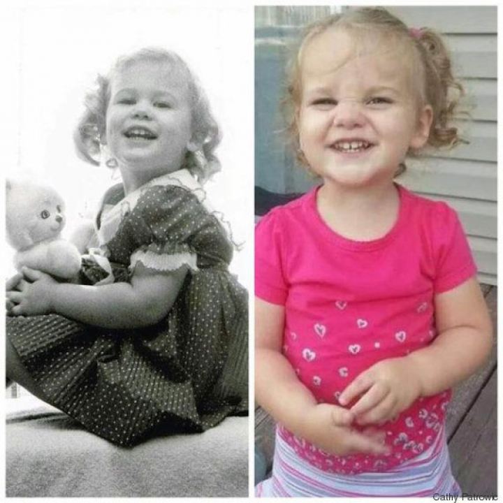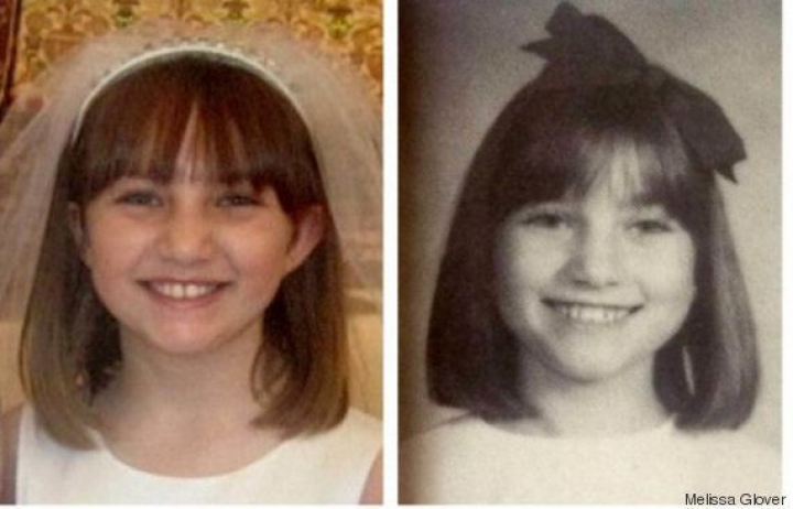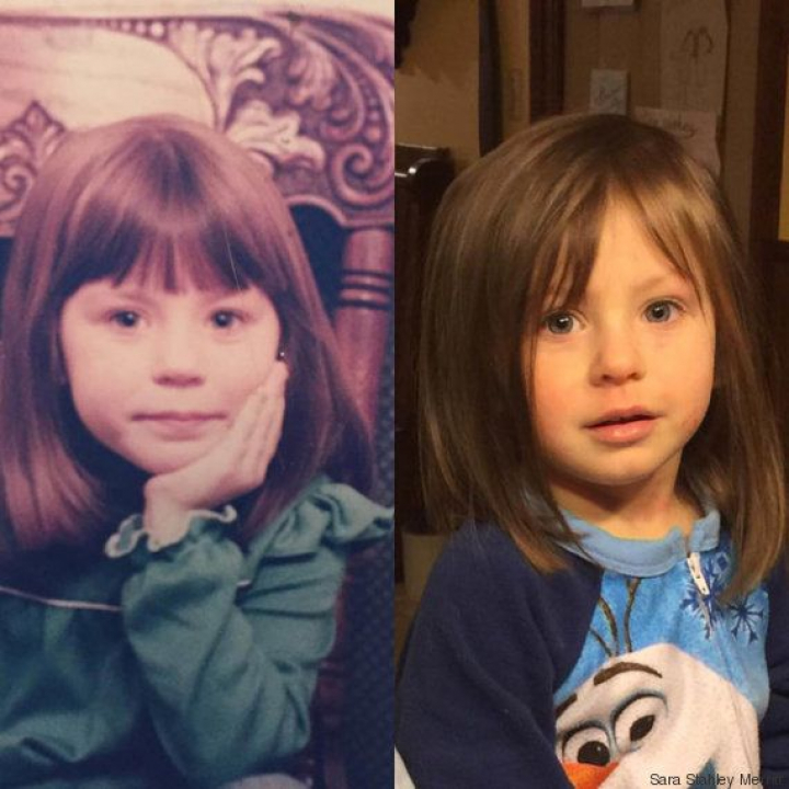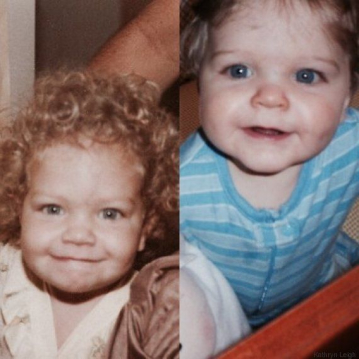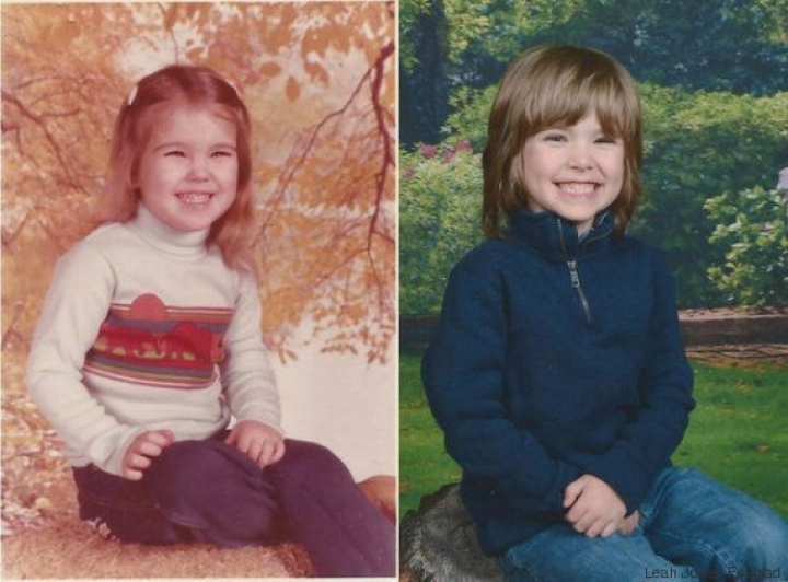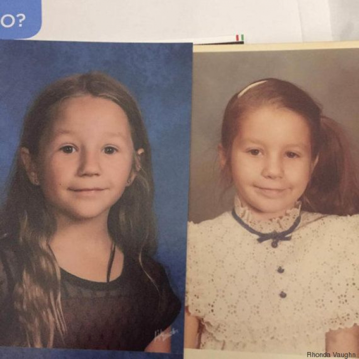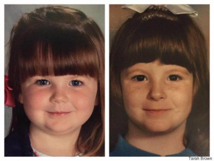 Cuando vi la foto que le habían hecho a mi hija en preescolar, supe de inmediato que me recordaba mucho a alguien. (Ella es la de la izquierda, con 4 años, y yo soy la de la derecha, con 5 años).
