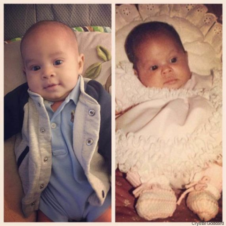 Mi hijo (izquierda) y yo (derecha), los dos a los 4 meses de edad. Cuando nació, todo el mundo me decía que había dado a luz a una copia de mí.