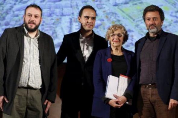 La alcaldesa Manuela Carmena (Ahora Madrid) ha presentado en el auditorio del Palacio de Cibeles esta propuesta municipal por el momento no consensuada con el Ministerio de Fomento y la Comunidad de Madrid, propietarios junto con el Ayuntamiento del 82% de los terrenos afectados, ni con BBVA y San José, promotores del plan y con derechos de gestión sobre los terrenos.