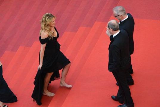 Sobre la alfombra, Stewart reconoció sentir los nervios "en los huesos y en las tripas" y Lively se las vio y se las deseó para borrar de la cara del director del festival, Thierry Frémaux, la marca del pintalabios que le había estampado al besarlo a su entrada en el Palacio de Festivales.