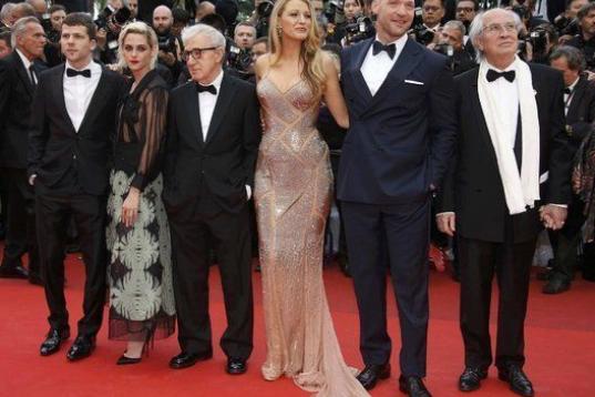 Mientras su hijo levantaba la polémica, Allen estuvo flanqueado por las estrellas de su película. Lively se mostró despampanante con un vestido de color cobre con destellos dorados, que no disimulaba una incipiente tripa de embarazada, mientras que Stewart, con el pelo teñido de rubio, optó por un conjunto con blusa negra con transparencias y falda negra con formas geométricas verdes.