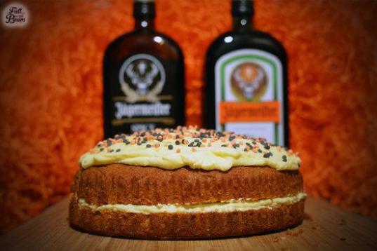 Para la tarta: 220 g. de azúcar moreno, 225 g. de mantequilla, 2 huevos, especias, Jägermeister, 1 cucharadita de jengibre molido, 160 g. de harina de autoelevación y 85 g. de harina de trigo.