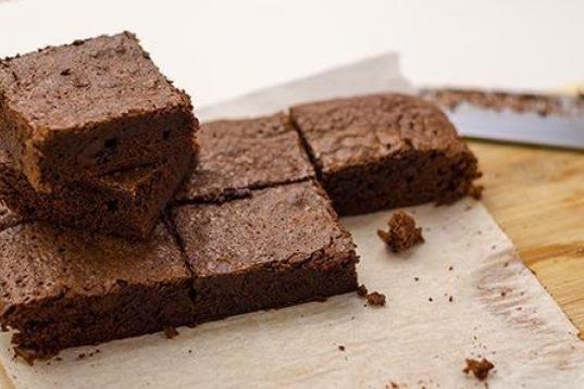 140 g. de harina, 1/2 cucharadita de levadura, una pizca de sal, 250 g. de chocolate negro, 3 huevos, 150 g. de mantequilla sin sal, 1 cucharada de cacao en polvo, 280 g de azúcar, 2 cucharaditas de extracto de vainilla y 4 chupit...