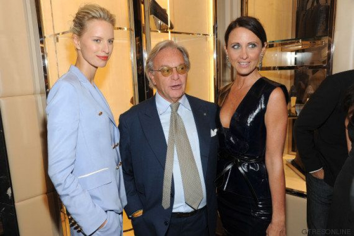 La modelo Karolina Kurkova, el fundador de Tod's, Diego Della Valle, y la diseñadora Alessandra Fachinnetti, en la tienda de Tod's de Nueva York en septiembre de 2014.