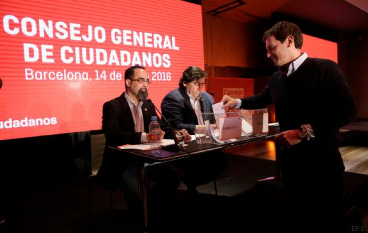 En el Consejo General de C's, los miembros de este órgano han aprobado la candidatura de Rivera a las elecciones generales del 26J con 35 votos a favor, tres en blanco y un voto nulo, y también han validado la lista del partido con 33 votos a favor y seis en blanco.