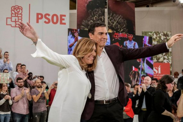 Susana Díaz y Pedro Sánchez, unidos en la proclamación.