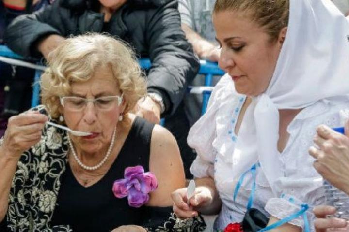 Tras la misa y el paseo, Carmena ha repuesto fuerzas con un tradicional cocido madrileño -distinto al que cocina ella, de estilo "canario", debido a que pasó allí una etapa de su vida, ha comentado- y después se ha dirigido a la carpa de Ahora Madrid.