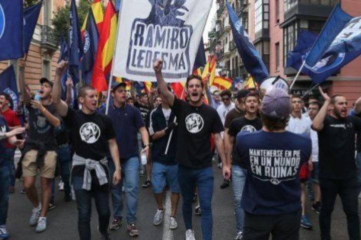 "Españoles sí, refugiados no". De este modo arrancaba la manifestación racista autorizada por la Delegación del Gobierno de Madrid y organizada por el colectivo de ultraderecha Hogar Social Madrid. La marcha neonazi comenzaba a las seis de la tarde en Plaza España y continuaba por el centro de la capital.