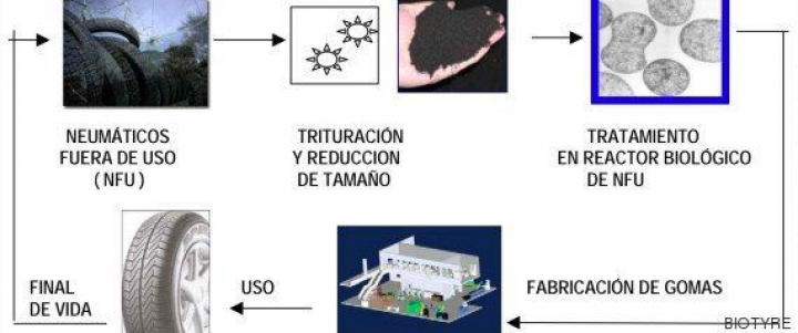 Un grupo de investigadores de la Universidad Politécnica de Madrid, junto a la Napier University de Edimburgo, junto a científicos de las empresas Biotyre y Realtech, han identificado una bacteria que puede revertir el proceso de vulcanización del caucho en 48 horas y separarlo del proceso químico que lo une al azufre, hasta ahora muy difícil y costoso de romper, dejando el caucho virgen y listo para volver a usarse.