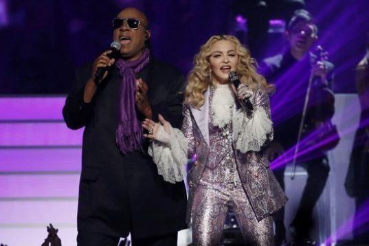 Madonna cantó una versión del clásico Nothing Compares 2 U, escrito por Prince y popularizado por Sinead O'Connor, mientras aparecían imágenes del artista de Mineápolis en la pantalla del recinto. Instantes después, el colofón llegó con la aparición de Stevie Wonder, que formó dueto con Madonna para entornar la mítica Purple Rain y completar así un sentido tributo. "Gracias Prince Rogers Nelson por todo lo que nos has dado", afirmó Madonna antes de despedirse.