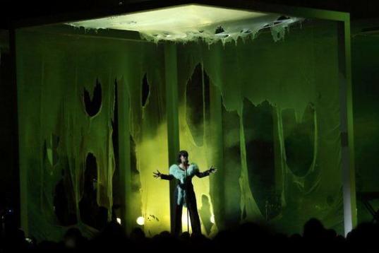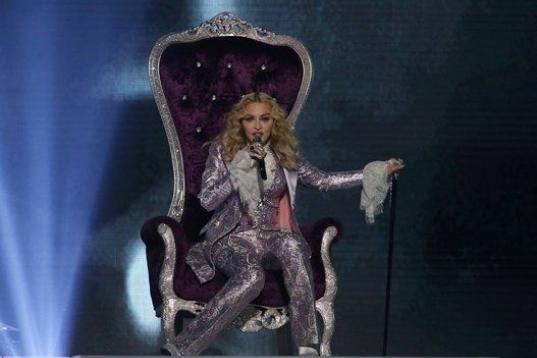El momento más destacado de la velada llegó al final de la ceremonia, celebrada en el T-Mobile Arena de Las Vegas (Nevada), cuando Madonna salió al escenario sentada en un trono de terciopelo morado y brillantes, luciendo un traje de pantalón en color lila y portando un bastón, en clara referencia a la figura de Prince, fallecido el pasado 21 de abril.