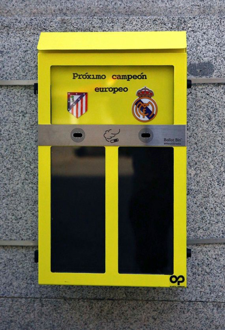 La alcaldesa de Madrid, Manuela Carmena, ha anunciado este lunes que el Ayuntamiento ya ha instalado las primeras "papeleras-urnas de votación", una experiencia piloto que ya han puesto en marcha preguntando a los madrileños qué equipo prefieren que gane la Champions, el Real Madrid o el Atlético de Madrid.