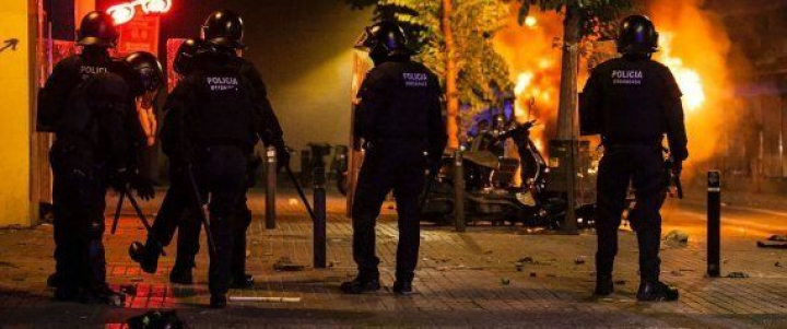 Los disturbios, de menor intensidad que los del lunes, han comenzado poco después de que las puertas del "banco expropiado", que fueron tapiadas con planchas metálicas tras su desalojo, hayan logrado ser reabiertas por manifestantes, lo que ha generado la intervención de los Mossos d'Esquadra.