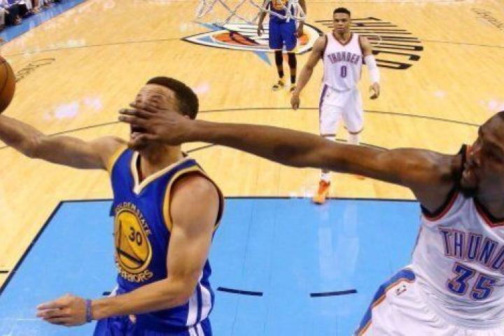 El base Stephen Curry, dos veces ganador del premio de Jugador Más Valioso (MVP), la última esta temporada por unanimidad, fue limitado por la defensa de los Thunder a 19 puntos tras encestar 6 de 20 tiros de campo.