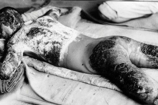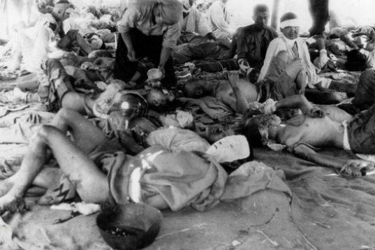 Víctimas de la bomba atómica de Hiroshima siendo atendidos en un hospital