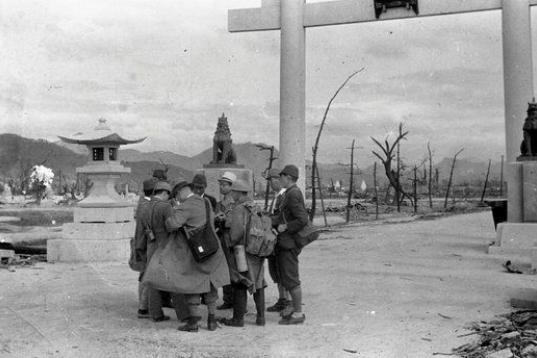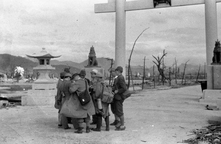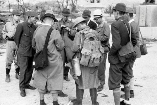 Un grupo de estudio realizan comprobaciones en Hiroshima poco después de que cayera la bomba