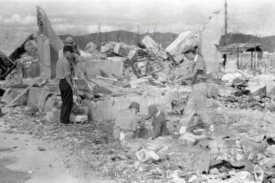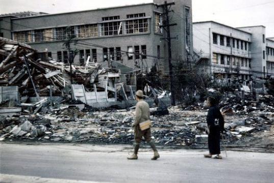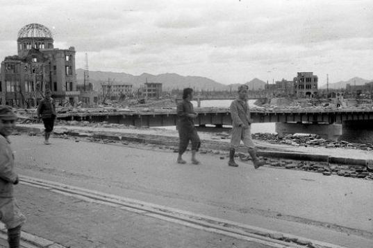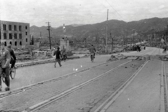 Japoneses paseando por Hiroshima poco después de que lanzaran la bomba atómica