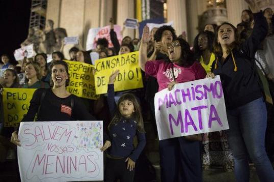 "Machismo mata" y "Salvemos a nuestras niñas", algunas de las pancartas que se vieron ayer en Río.