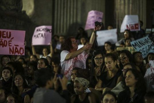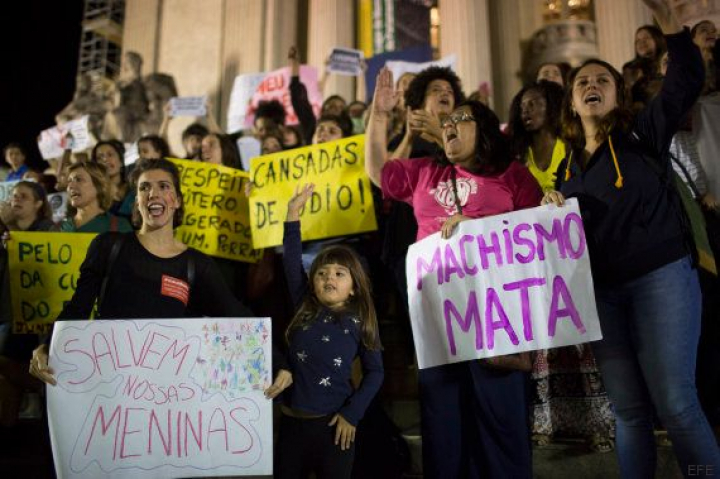 En Río de Janeiro, un grupo de unas 200 personas, en su inmensa mayoría mujeres, se concentró frente a la Asamblea Legislativa con carteles de rechazo a las violaciones y lemas como "Cuando digo no, es no" y "No a la cultura de la violación".