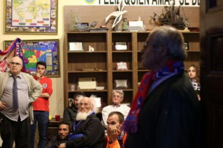 En el barrio de Chueca, en la iglesia de San Antón, decenas de personas sin techo siguieron el partido en la antigua sacristía, en el marco de una nueva iniciativa impulsada por el padre Ángel, fundador de la ONG Mensajeros por la Paz, que gestiona el recinto.