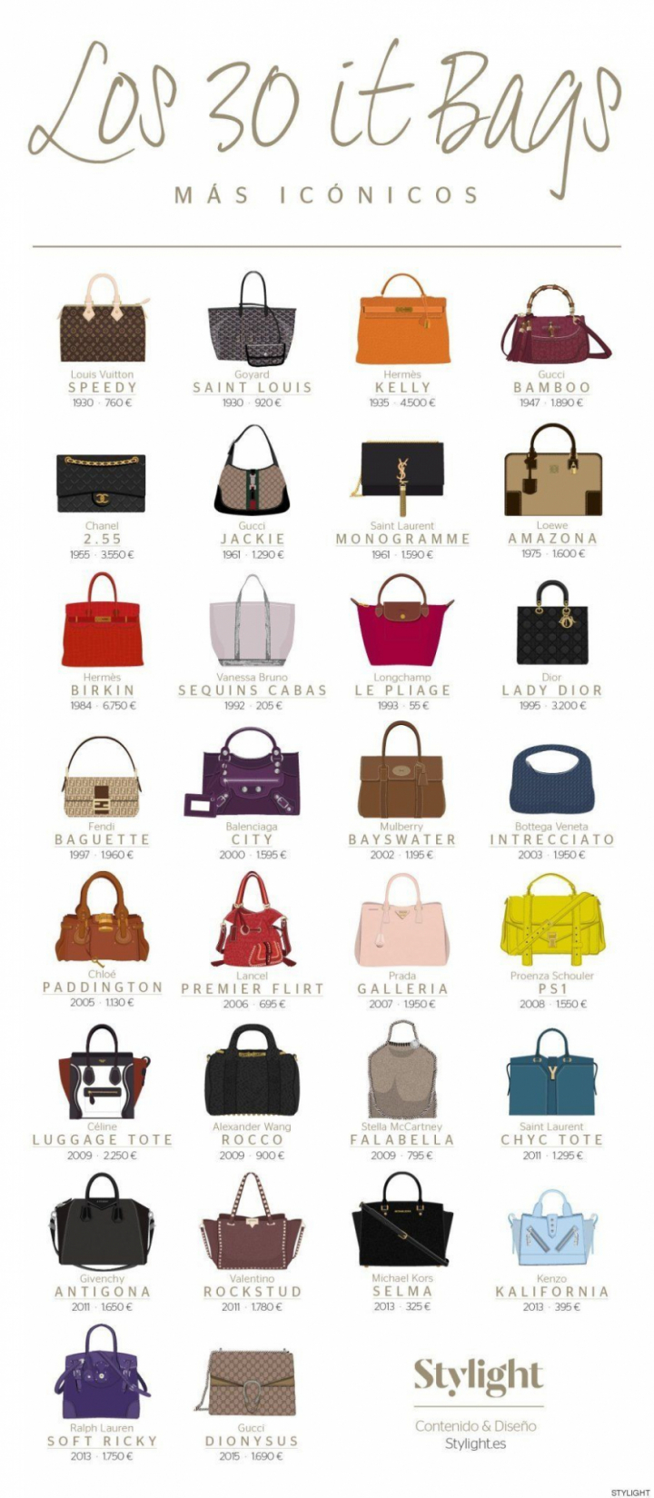 Así, quienes se conozcan los bolsos por sus nombres y apellidos y ahorren durante meses años para lograr uno de sus objetos de deseo amarán esta lista de los 30 It Bags más icónicos de todos los tiempos que han preparado en Stylight. Pincha sobre la imagen para ampliarla.