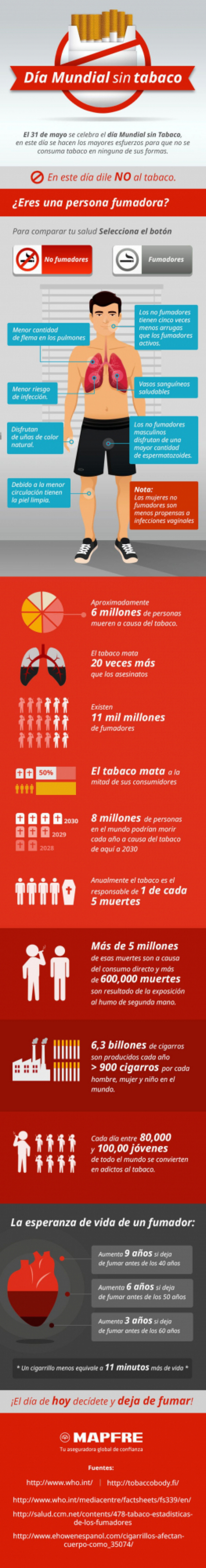 Y lo cierto es que cada vez fuma menos gente, aunque nunca suficiente. Porque, según datos de la Organización Mundial de la Salud (OMS), el tabaco mata cada año a casi seis millones de personas en el mundo, de las que más de cinco millones son consumidores del producto y más de 600 000 son fumadores pasivos. Más concretamente, en España cada año mueren 60.000 personas por culpa del tabaco, de las que 3.000 son fumadores pasivos.