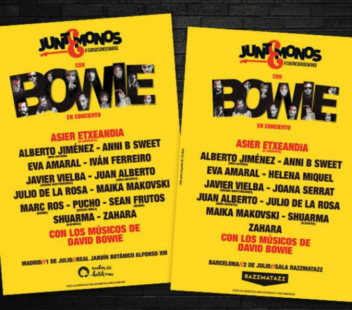 Ahora imaginemos un evento que junte a las mejores voces del pop y el rock español: Eva Amaral, Annie B Sweet, Iván Ferreiro, Shuarma, Zahara, Pucho (Vetusta Morla), Xoel López, Marc Ros (Sidonie), Javier Vielba (Corizonas), Julio de la Rosa, Maika Makovski... Todos en el mismo escenario para homenajear a David Bowie. Pues sí, eso será posible gracias a la iniciativa Juntémonos con Shows on Demand, la plataforma de #FanFunding colaborativa que permite a una comunidad de fans que sus artistas favoritos actúen en su localidad o se junten en un concierto muy especial.