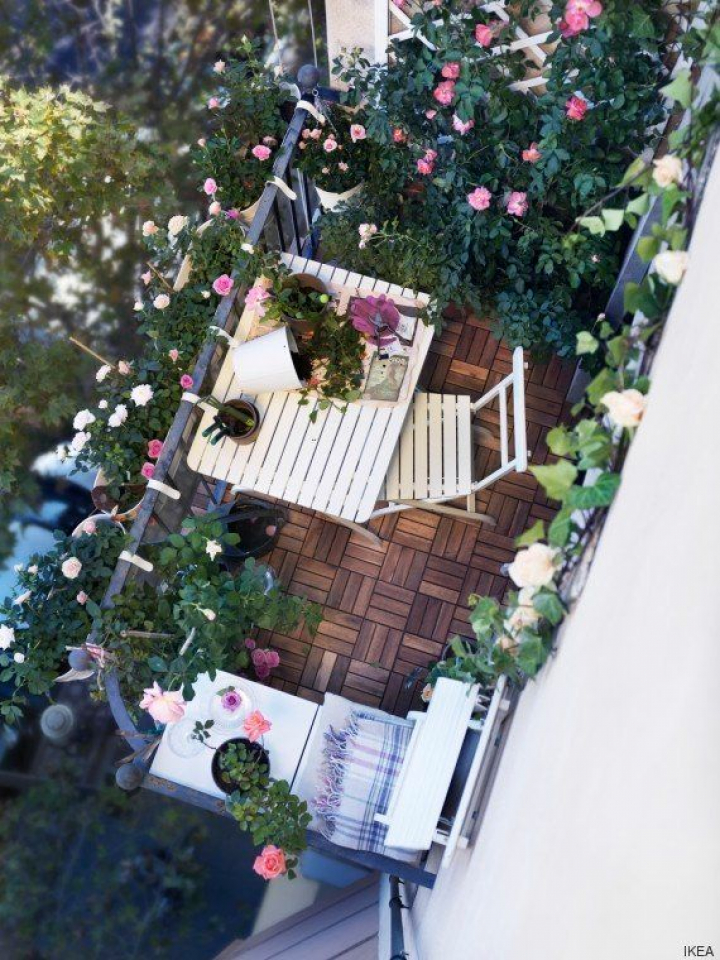 Los balcones con poco espacio pueden aspirar a algo que los grandes tienen más difícil: por menos 20 euros se puede cambiar el suelo por uno de tarima de madera.