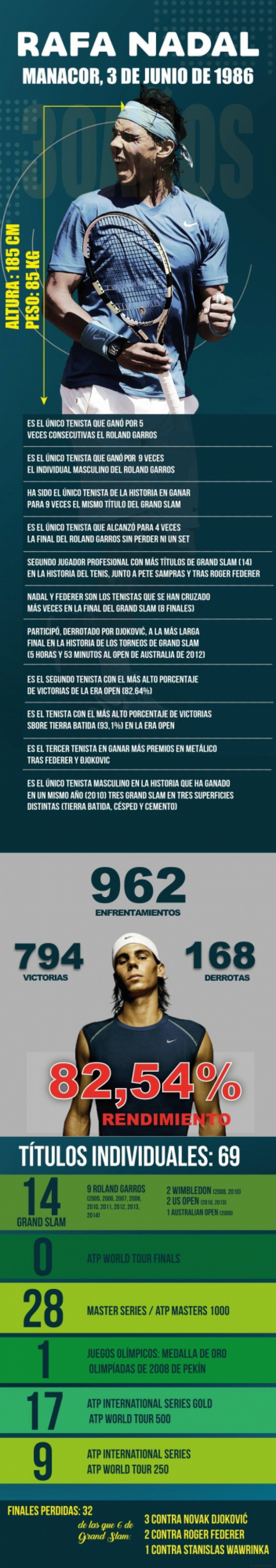 Repasamos con la ayuda de esta infografía elaborada por Stampa Print los números que ayudan a explicar por qué Nadal es un deportista consagrado: